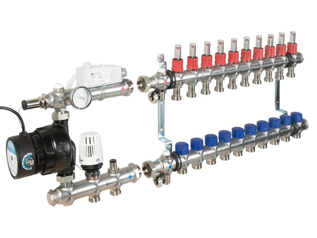 Alpex boru, pres bağlantılar, kolektörler, kenar yalıtımı ve oda kontrolü ile yerden ısıtma altyapısı.